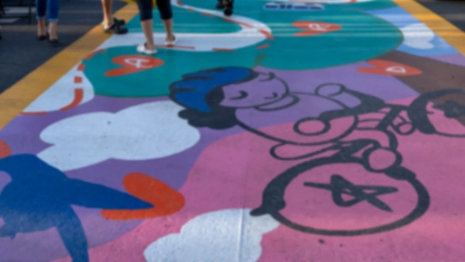 PASEANDO - WANDERING, mural, 12’ x 40’, thermoplastic on asphalt